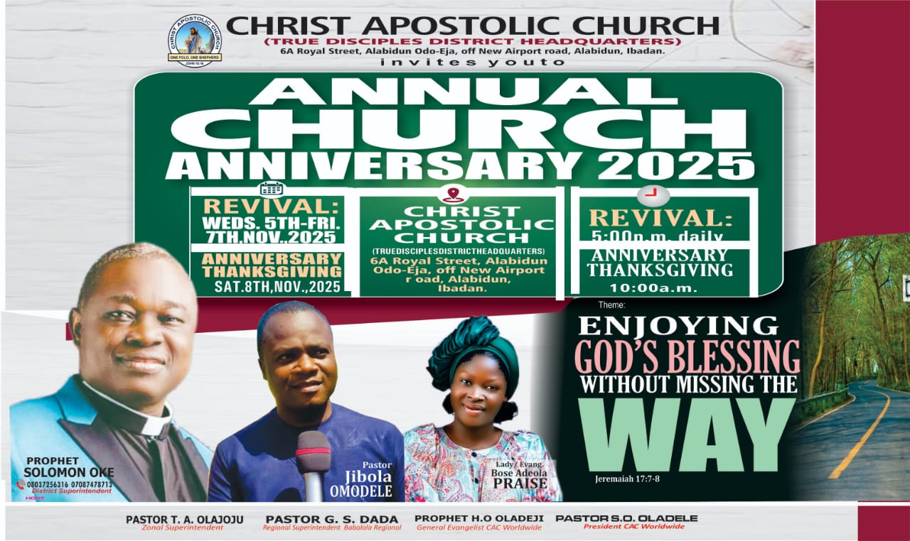 Christ Apostolic Church (CAC) True Disciples, Alabidun, New Airport Alakia, Ibadan, has marked its 19th anniversary with a series of colourful and spirit-filled celebrations, thanking God for nearly two decades of divine grace and community service.