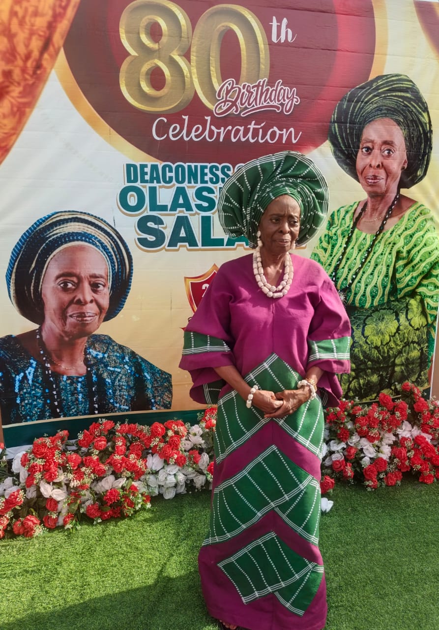 Family members, friends, and well-wishers, on Saturday, gathered in Ibadan, Oyo State, to celebrate the 80th birthday of mother of the Administrative Secretary of the Nigeria Union of Pensioners, Oyo State Council, Mrs. Olawunmi Alonge, Deaconess Odunola Salami.