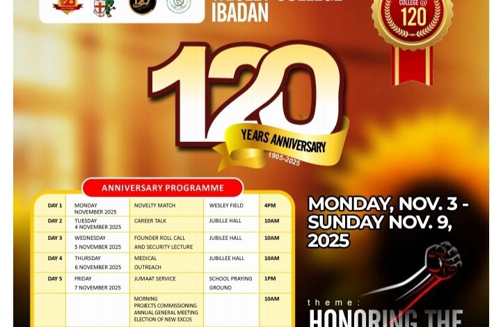 Read More »All is set for the 120th anniversary celebration of Wesley College, Ibadan, Oyo State, with a series of events scheduled…